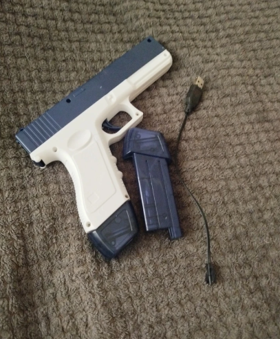 Идеальный водяной пистолет. Стреляет далеко и воды хватает. Заряда надолго хватает. В комплекте идет еще и сам провод, что достаточно хорошо. Мы в восторге будем брать еще такие пистолеты, цена хорошая -товар качественный